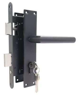 Slot passend in al onze poortdeuren, (Behalve de rabatdeur). Inhoud: insteekslot, cilinderslot met 3 sleutels, 2 stuks deurschild en klink met zwarte strucuurcoating.